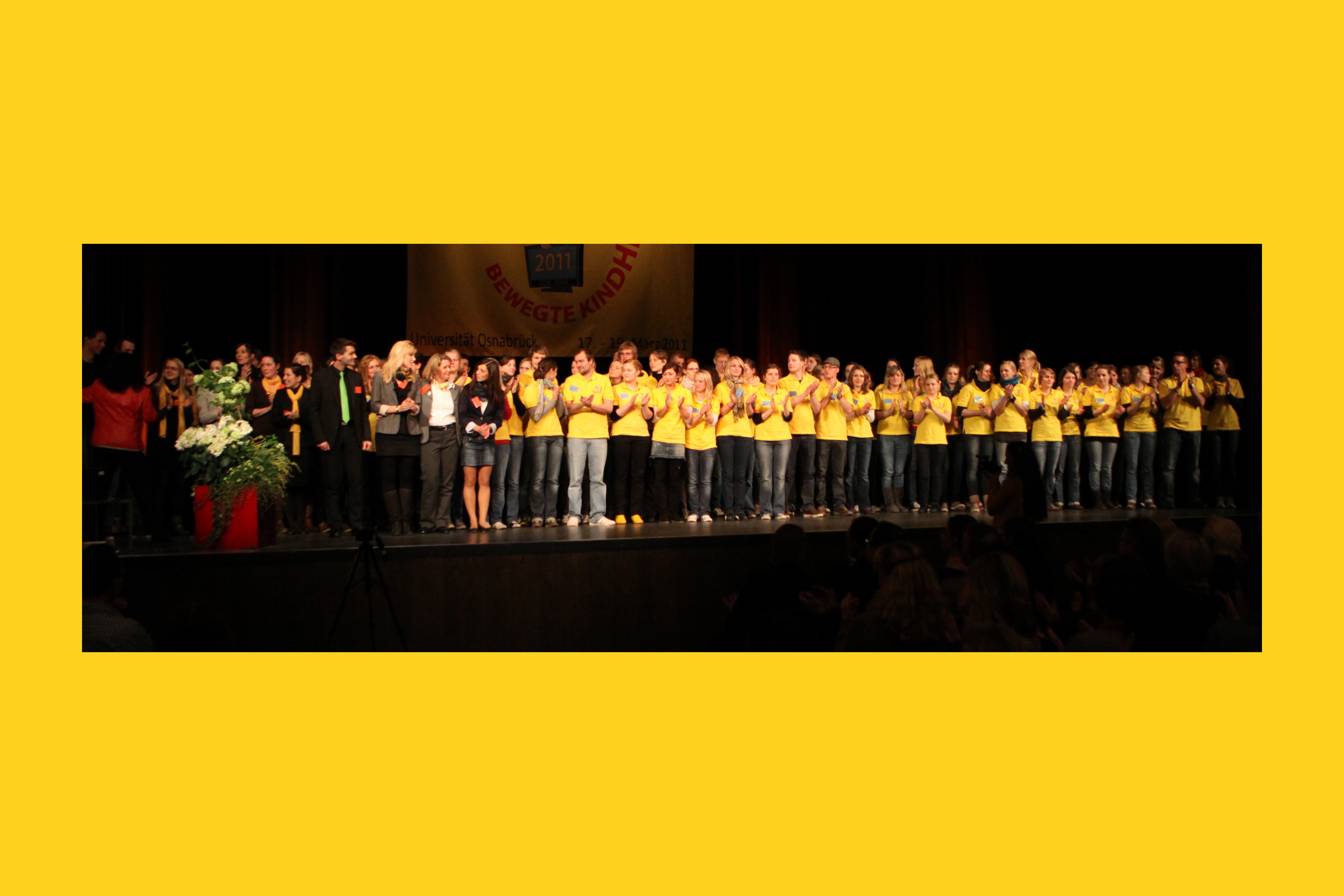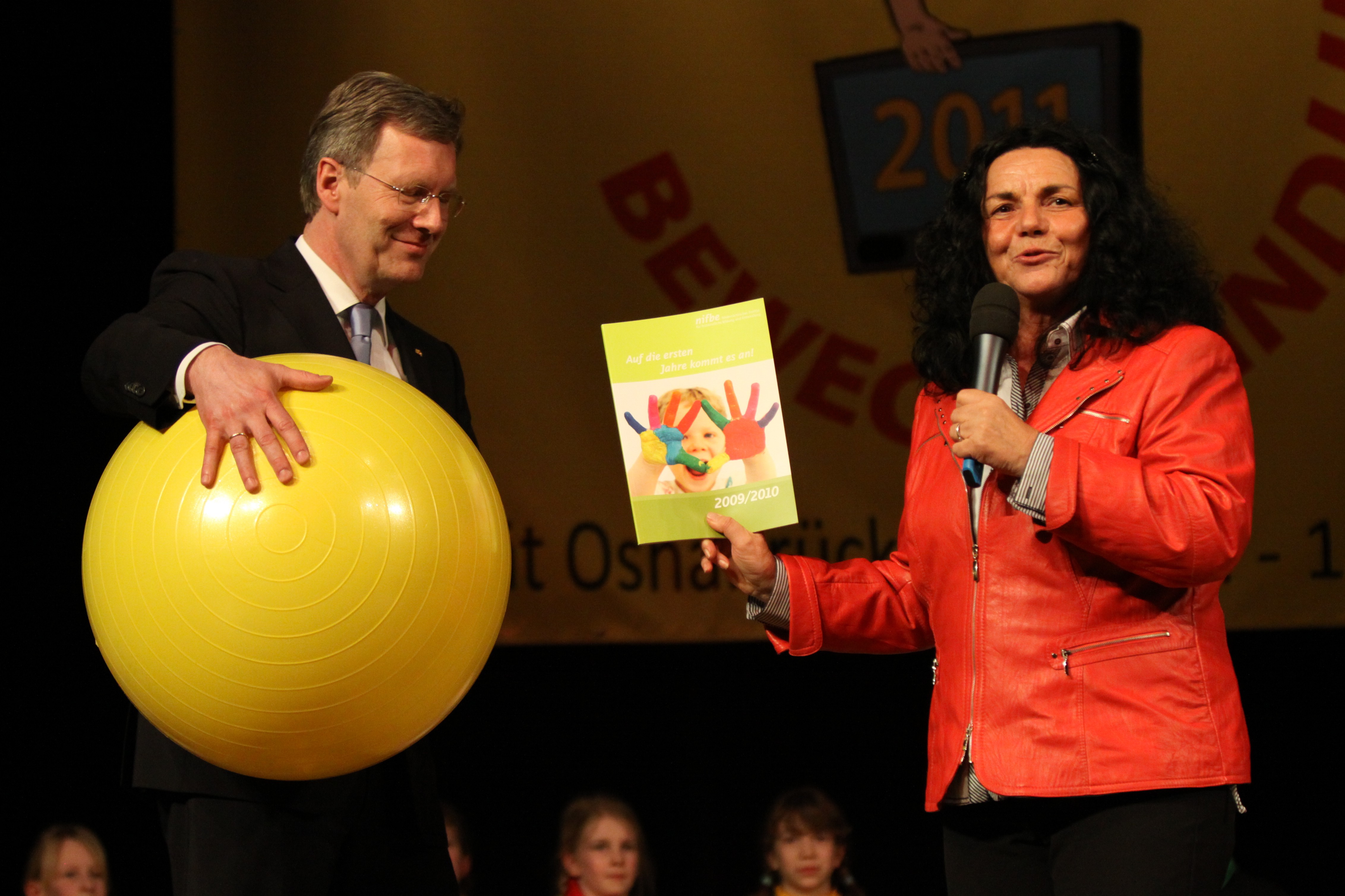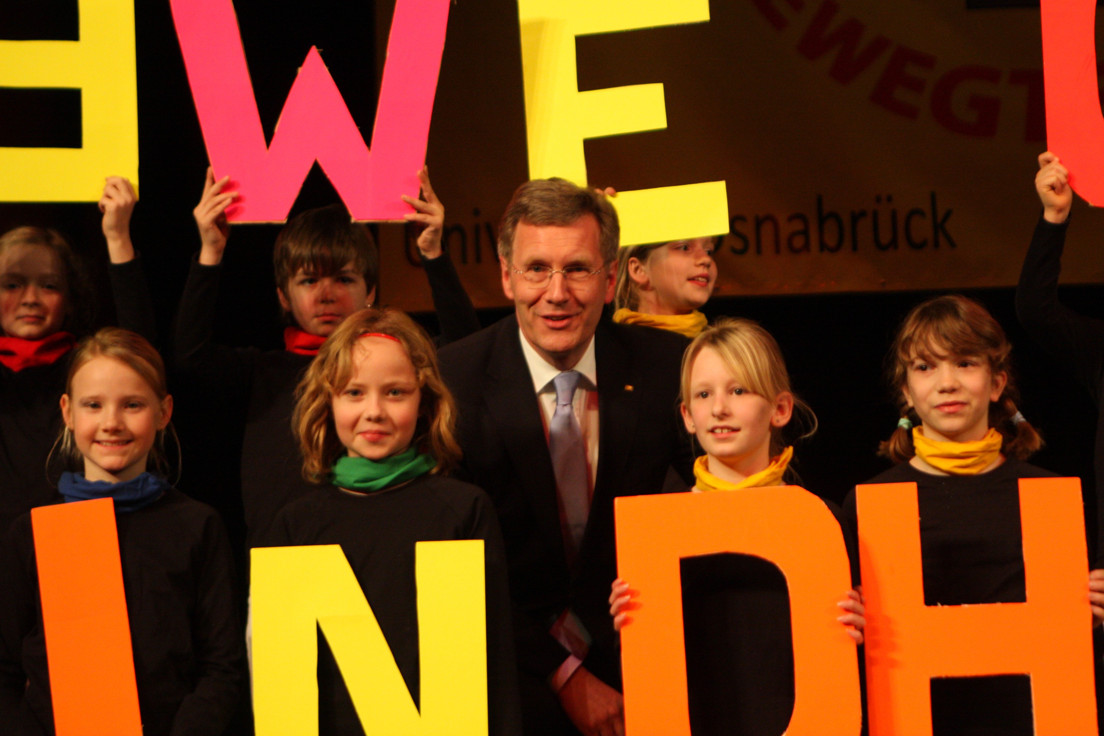 Der 7. Osnabrücker Kongress "Bewegte Kindheit" ist beendet. Mit 3.000 Teilnehmerinnen und Teilnehmern aus ganz Deutschland, aber auch aus vielen europäischen und sogar aus asiatischen Ländern hat er eine Dimension erreicht, die uns vor große Herausforderungen stellte. Wir freuen uns sehr, dass der Kongress sehr erfolgreich verlaufen ist. Die Eröffnung durch den Bundespräsidenten Christian Wulff war für uns eine große Anerkennung, sie setzte einen besonderen bildungspolitischen Akzent. Wir bedanken uns bei den Referentinnen und Referenten, bei den Fachausstellern und Helfer/innen, die durch ihr Engagement und ihren großartigen Einsatz maßgeblich zum Erfolg des Kongresses beigetragen haben. Bedanken möchten wir uns auch bei den Teilnehmerinnen und Teilnehmern, die mit ihrer Begeisterung und ihrem Interesse die fröhliche und fachlich anregende Atmosphäre bestimmten. Ein großer Dank gilt unseren Kooperationspartnern und den Förderern des Kongresses!